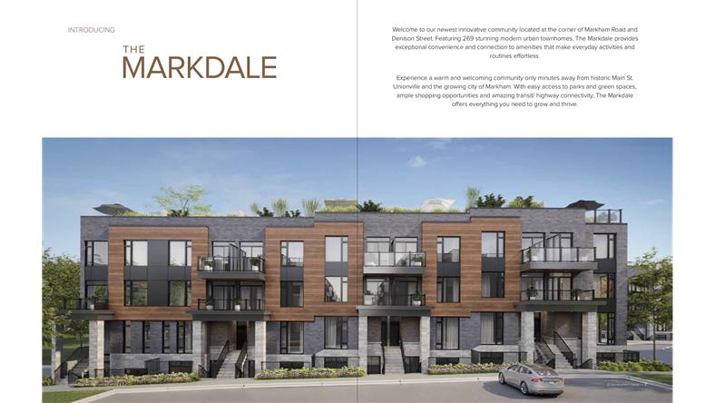 坐落于Markham Rd 和 Denison St, 这个成熟的社区即将迎来 The Markdale I 期的147 栋叠式联排别墅。在这个舒适且设计前卫的社区,周边还拥有着便利的交通和生活设施,日常生活的种种都将变得毫不费力,给予您和您的家人无限成长和享受的空间。