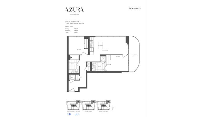 Azura condos 2房2卫转让,地址:15 HOLMES AVE, 叫价95.8万,2022年4月入住。5楼,805尺带一个车位无locker. 管理费$0.65/尺 包暖