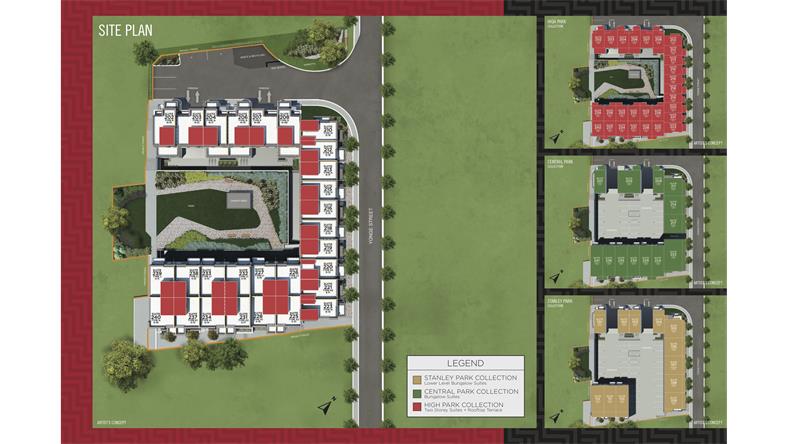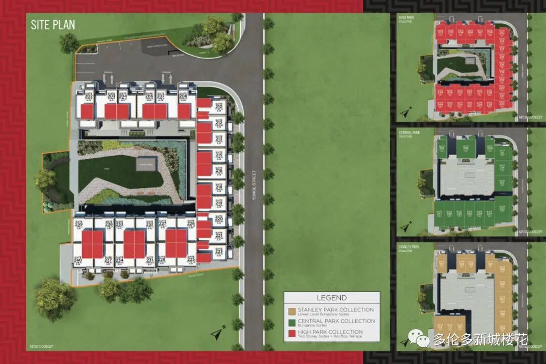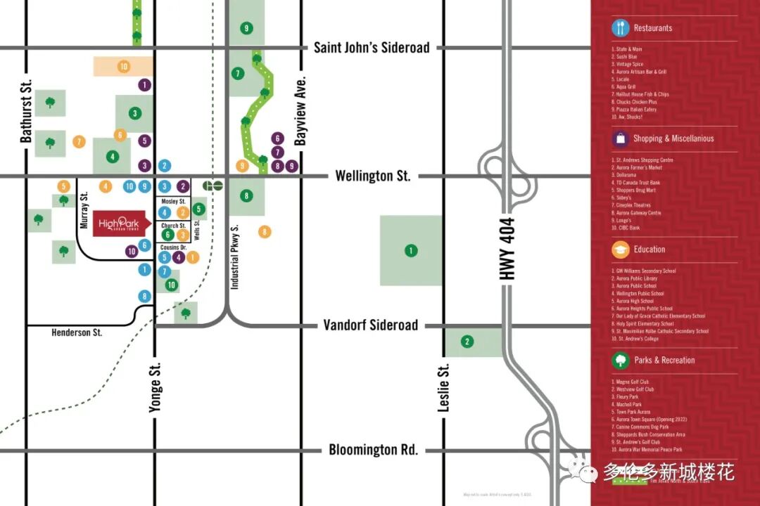 【楼盘名称】High Park Urban Towns in Aurora 【开发商】Caliber Homes 【地址】15086 Yonge St Aurora, ON L4G 1M2 【交界处】Yonge St / Wellington St West 【类型】公寓镇屋 【单位总数】55套 【价格区间】$74万余起 - $105万余 【单位面积】720尺-1232尺 【交房日期】预计2023秋季交房 High Park Urban Towns所处Aurora中心繁华地带
