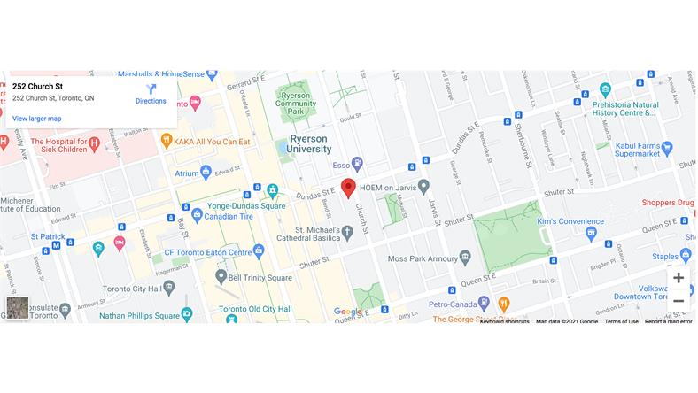 252 Church公寓坐落在King St.W和John St西南角、市中心繁华地段Church-Yonge Corridor(C08)社区内,属于多伦多市中心的娱乐区,并且紧临金融中心。公寓不到200米远,即是Dundas Square广场,这个地方寸土寸金,全多伦多最金贵的地盘之一,简直相当于纽约的“时代广场”。