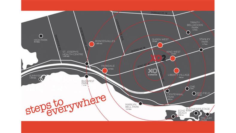 XO2 Condos所在的社区因充满朝气与活力,以时尚潮流现代艺术而广为流传,深受年轻人和艺术创作者的喜爱。该区交通发达,也正好适合事业学业刚起步的还未购买汽车的年轻人,XO2 将成为他们的第一块“跳板”。 XO2 Condos也为在Liberty Village的白领提供了一个绝佳的居住场所。不仅离上班地近,下班后也可以在周边的特色餐厅与酒吧,和同事朋友小憩一下,放松心情。 楼盘名称:XO2 Condos