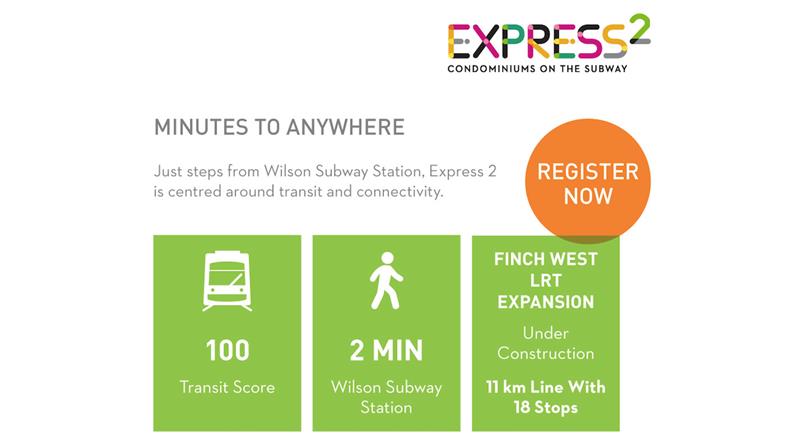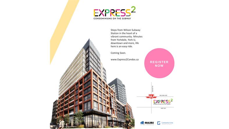 「Express 2 Condos」位于Hwy401 and Allen Rd交接处,走路2分钟到Wilson地铁站上。地址是10 Tippett Road,处于Tippett Road和 Wilson Ave 交界处的东南角,离Yorkdale 购物中心只有一个地铁站的距离。该公寓地处北约克好地段,在Mailbu在北约克第一个项目成功项目Gramercy Park的南面,是其建筑的完美延续。旺市地铁通车之后,这里正好连接着多伦多市中心, 旺市市中心,Yorkdale Mall,约克大学,未来必将成为房地产投资者必争之地!由Malibu开发,Malibu同时携手本地设计公司RAW Desgin作品,非常有特色的设计公司,近几年拿过非常多设计大奖,又将重重的在北约克添上一笔。