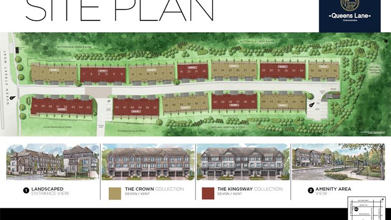 Queens Lane座落于宾顿市中心Huttonville溪畔,被迷人的大自然所环绕,两旁是树林,可俯瞰小溪,毗邻Lionhead高尔夫乡村俱乐部,对面是Estates of Credit Ridge 蜿蜒的小径。四周餐饮、购物、银行、药房、游乐场、图书馆、社区中心、娱乐设施和运动场设施齐全,可以满足家庭日常生活所需。Sheridan College 的Davis Campus也有附近,因为近且配套齐全,所以这里将会成为校外住宿首选。