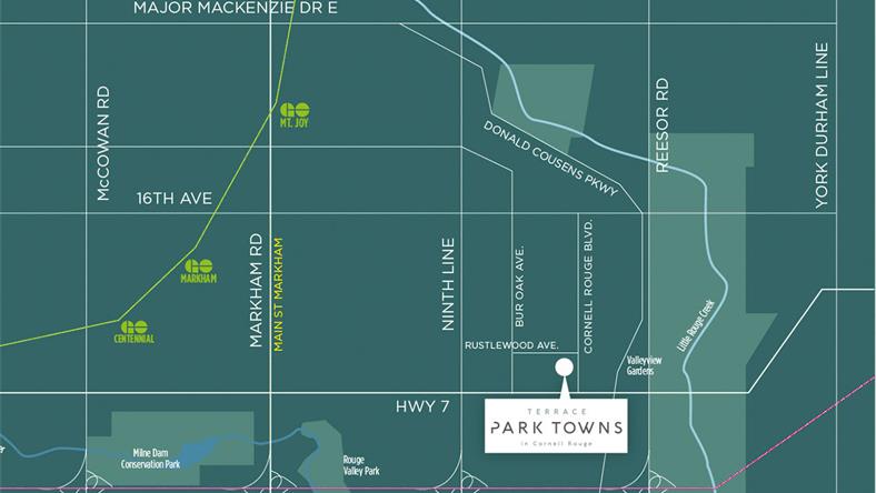 Terrace Park Town是由开发商Forest Hill Homes在万锦市开发的豪华镇屋项目,位于Cornell社区内,在Hwy7&Donald Cousens Pkwy的交界处。