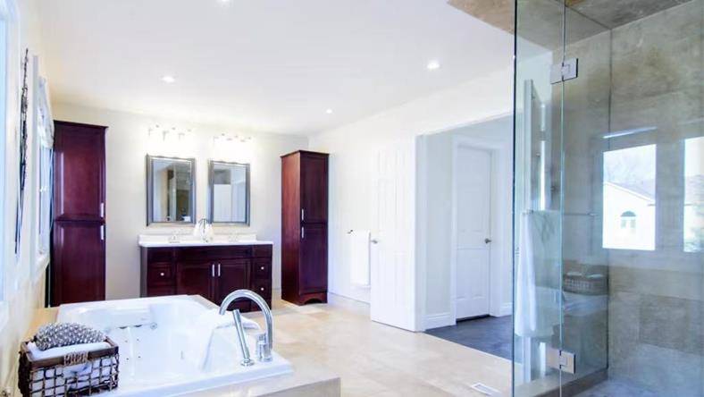主楼层罕见 9 英尺高天花板,设有宽敞的客厅、正式餐厅、带壁炉的家庭房和可就餐的厨房。额外空间可用作书房或办公室,直通向内部入口的车库。硬木螺旋楼梯一直延伸到 3 层。大多数窗户都已更换。屋顶 2017 年安装了许多筒灯和加州百叶窗/清新的中性装饰画。二楼有 4 间大小合适的卧室,全部硬木地板。主卧室提供宽敞的休息区、有超大男女两个分开的步入式衣橱、带独立玻璃淋浴的 5 件套超大浴室走出去即可到达风景优美的私人后院。带有多层木板的地下游泳池提供夏季娱乐的空间。