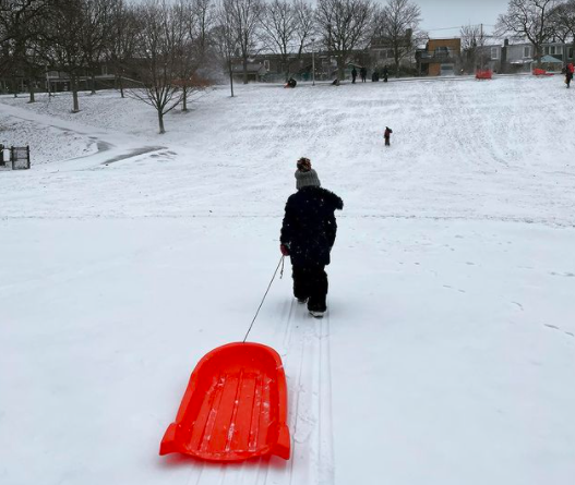 这个公园号称多伦多最好的滑雪橇山坡。