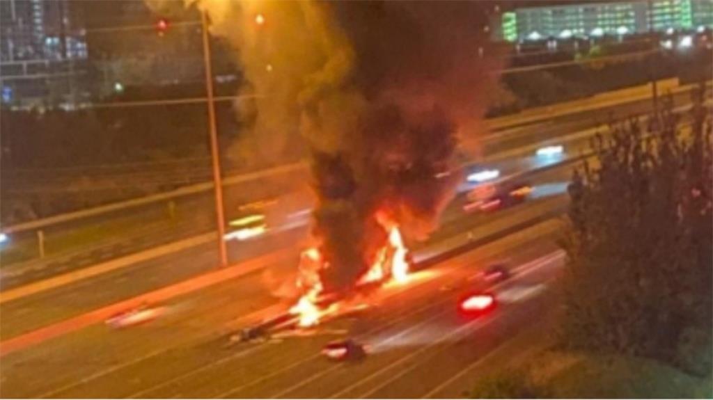 其中一辆涉案车辆起火并阻塞了从快车道到慢车车道的高速公路转线出口。