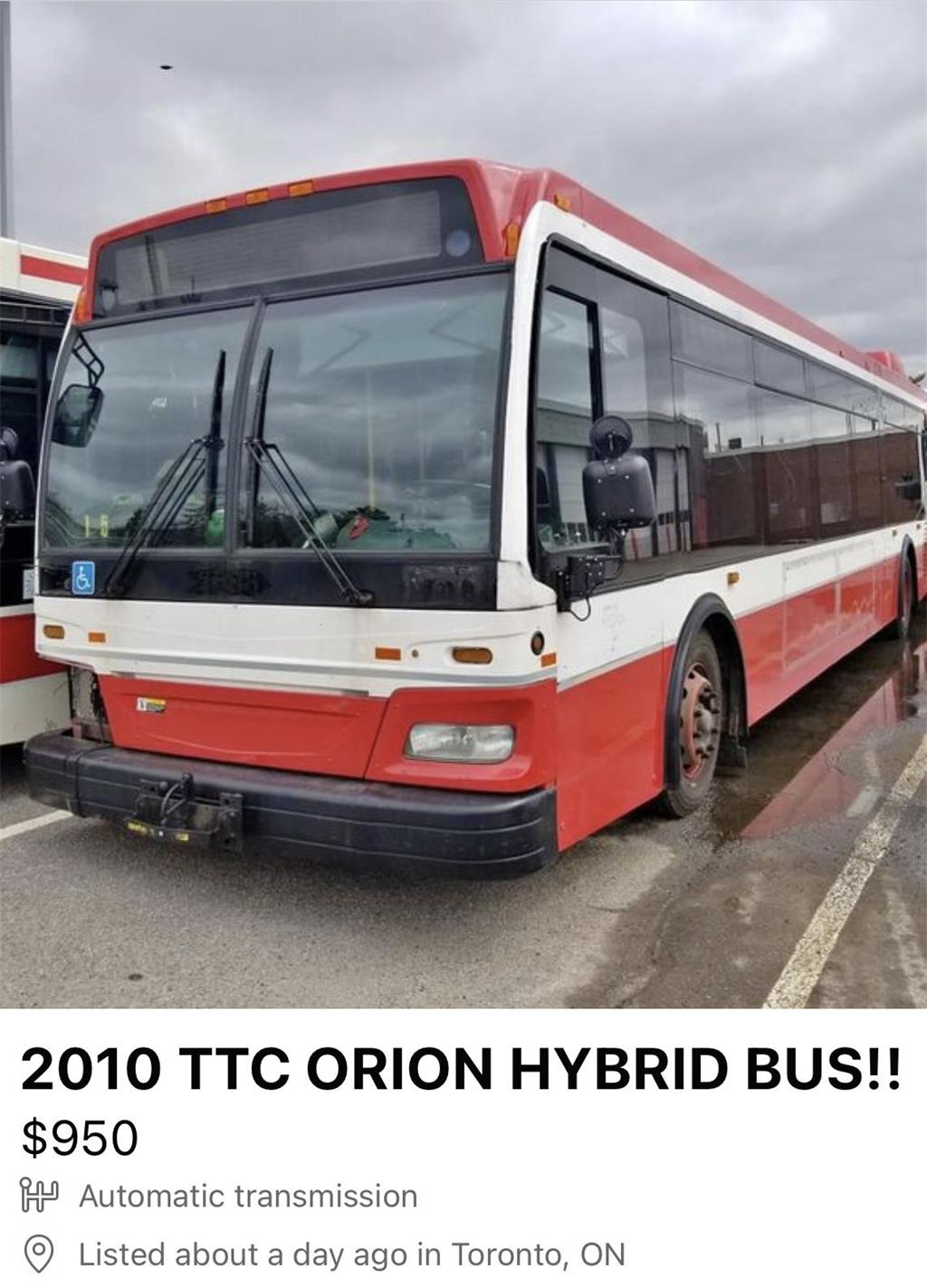 周三,一位卖家以仅 950 加元的价格出售一辆 2010 TTC Orion Hybrid 公共汽车,这导致了一个潜在买家在设法想获得这辆车。然后发了帖子,询问是不是应该购买这里车...... 这下发动了其他人开始集思广益,思考如何将车辆翻新成露营车、改装成一室公寓。甚至可以是通勤用的巴士,以便在繁忙路线的高峰时段拉人收费。