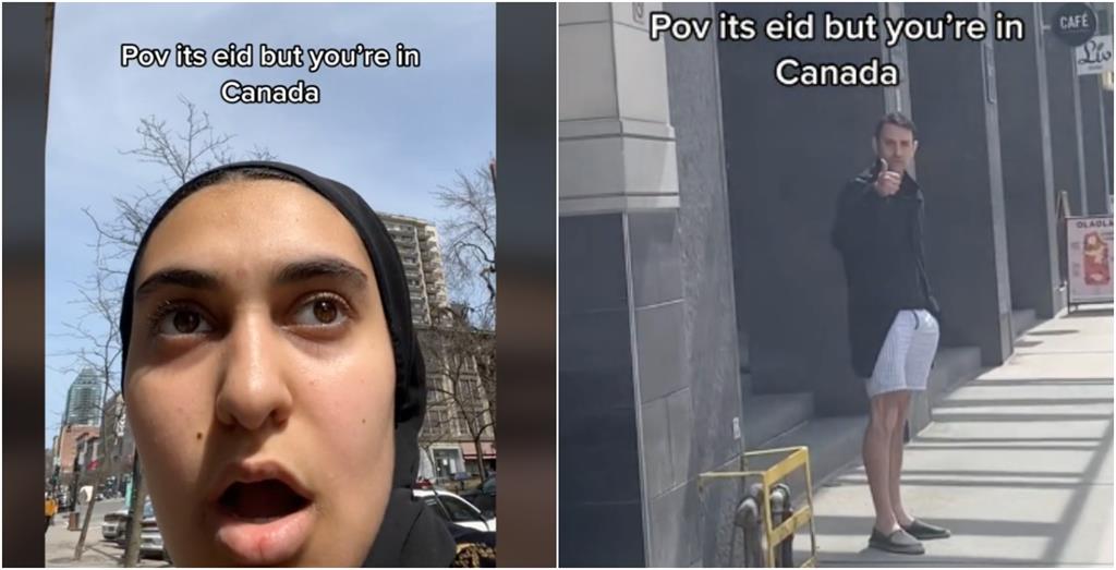 在视频说明中,她写道:“我认为这是法语的‘Eid Mubarak’,但 idk #muslim #islam #eidmubarak。”