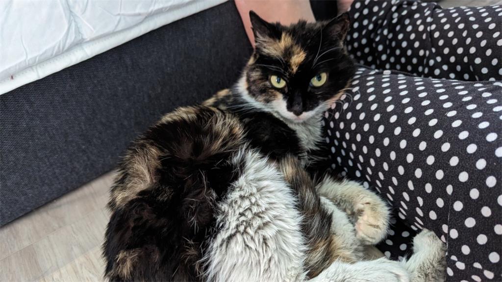 BC SPCA 说,一旦 Precious 完全康复,这只从中国邮寄过来的三花猫将被收养。