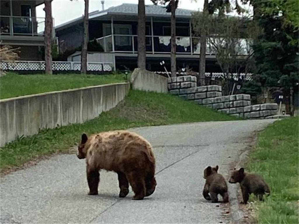 本周早些时候,肖恩·金 (Shawn King) 在内陆基洛纳 (Kelowna) 西北约 167 公里处的坎卢普斯 (Kamloops) 的 Valleyview 社区外出散步时,他发现一只熊正在教她的幼崽如何觅食垃圾。