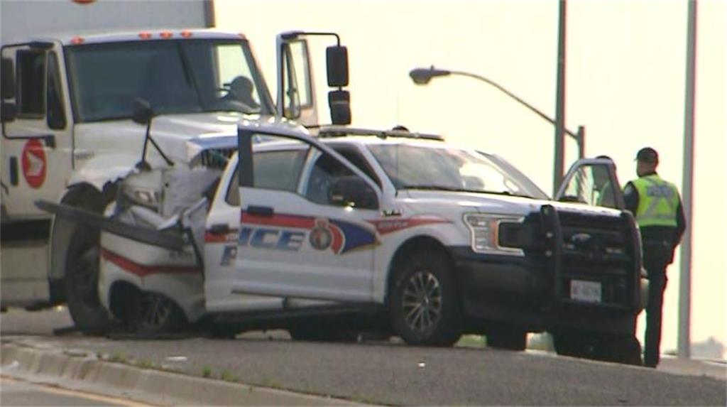 多伦多警方表示,事故发生时,这名警官正停在路边,卡车司机仍在现场。