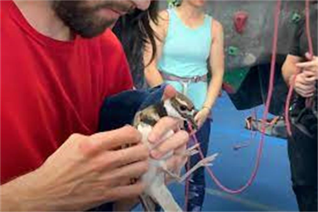 TWC 通讯经理布列塔尼在视频中表示:“我们 TWC 的一些工作人员来到这里的健身房攀岩,我们恰好在正确的时间出现在正确的地点,因为伯格博士能够对他这个可怜的小鸟进行评估。”