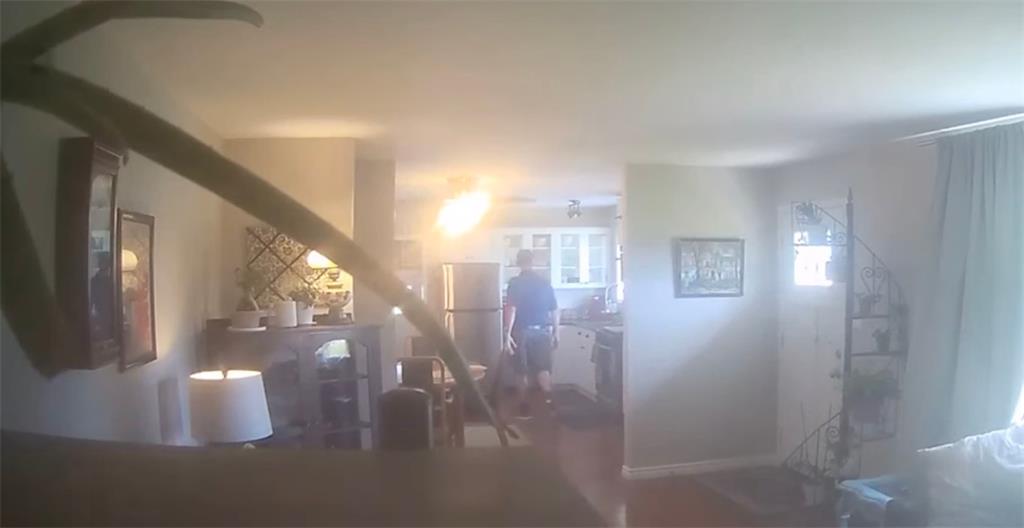 视频开头是这名房地产经纪打开厨房的一些百叶窗。他短暂地看着窗外,四处闲逛。