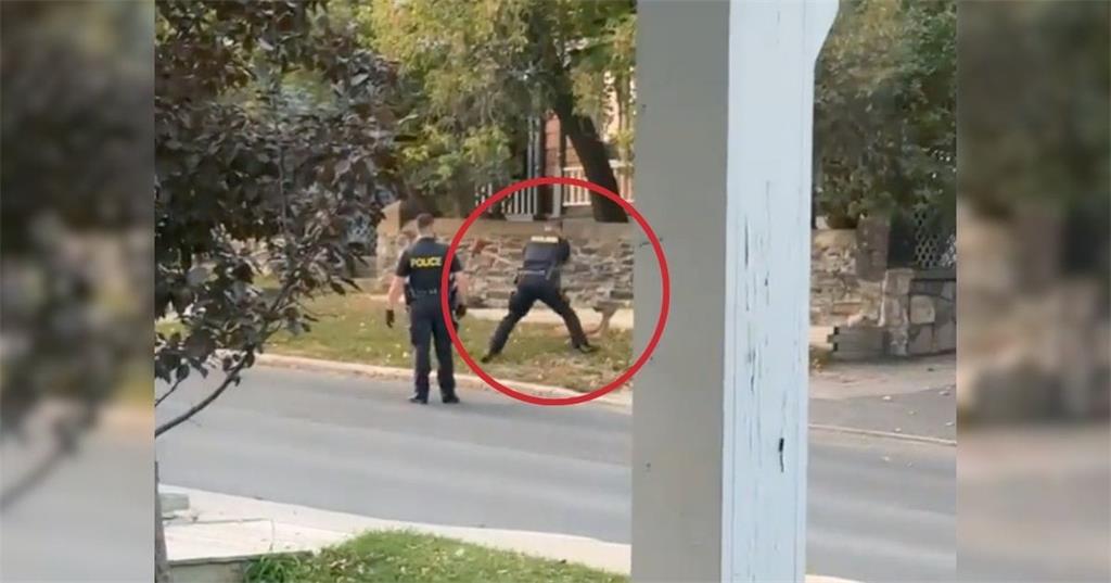 9 月 3 日的视频显示,警察在安大略省凯诺拉的一条住宅街道上,可以看到一名警察反复挥舞斧头来消灭受伤的动物。