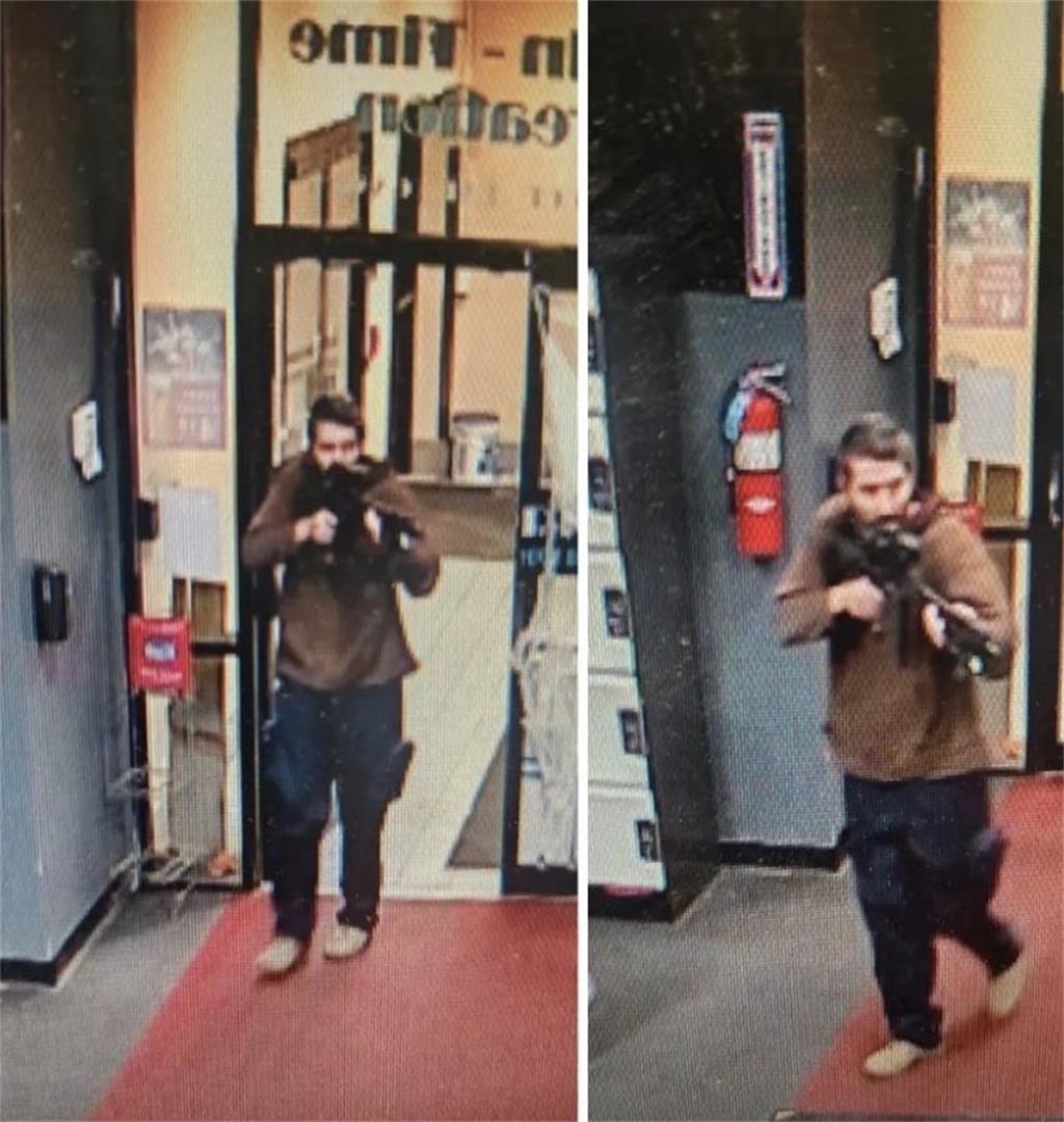 安德罗斯科金县警长办公室在其 Facebook 页面上发布了两张嫌疑人的照片,照片显示枪手肩上举着武器走进一处场所。