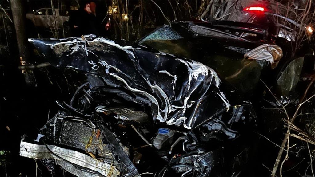 车辆撞上一根电线杆并分成两半。