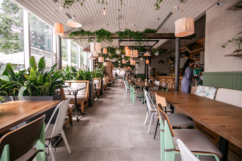 我拉开一扇厚重的门,进入了高档餐厅。这是一个可爱的气氛,高高的天花板,木桌子,和柔和的灯光。