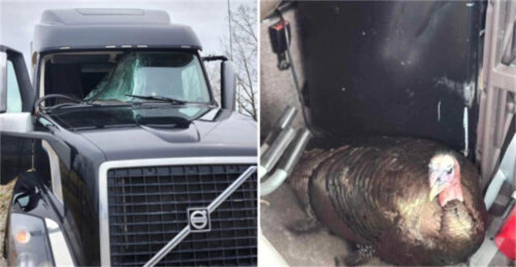 在安大略省高速公路上发生的一场离奇事故后,一名卡车司机和一只野生火鸡都奇迹般地安然无恙。