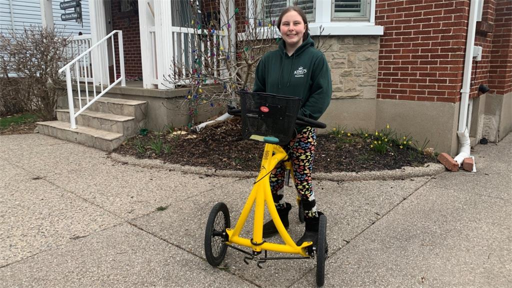 车把上的定制环节有助于从在线销售广告中识别出Haven Raeburn-Gibson被盗的移动自行车,这家人很庆幸KUC有应急基金,并购买了Haven的替代品,以便在自行车被盗时使用。她现在有一辆备用自行车。
