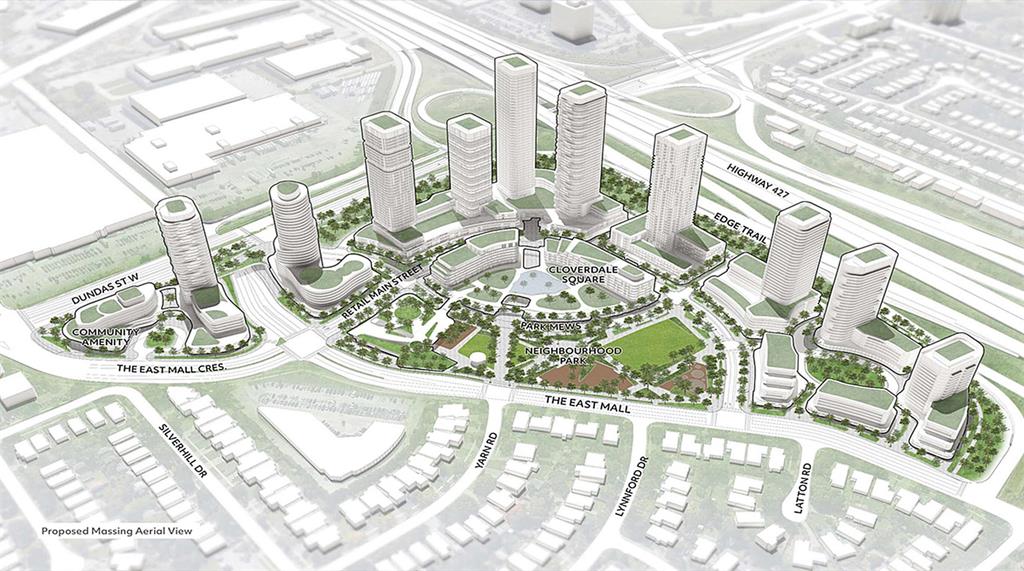 大多伦多地区的郊区购物中心也正在制定类似的计划。今年早些时候,有人提议对布兰普顿 (Brampton) 的一家购物中心进行重大重建,寻求建造 15 座高达 68 层的塔楼的许可。