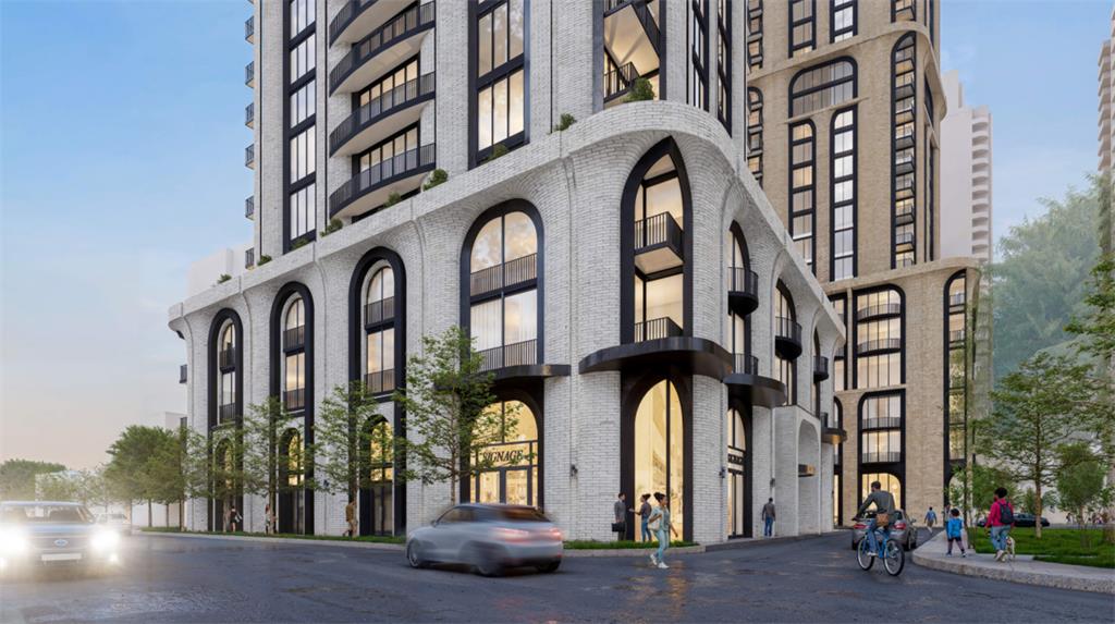 B+H Architects 设计的作品摆脱了主导当地天际线的典型玻璃盒子美学,其几何形状包括摒弃多伦多规范的弯曲砖块元素。