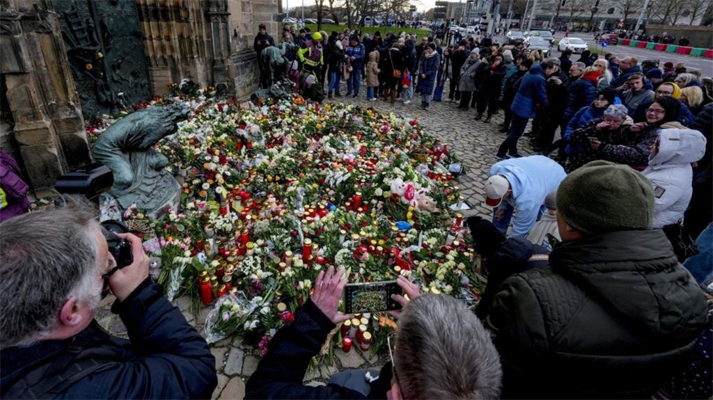 德国马格德堡 -周六,德国民众举行哀悼仪式,悼念疑似袭击事件的遇难者。当局称,一名医生驾车冲进繁忙的户外圣诞市场,造成 5 人死亡,200 人受伤,动摇了公众的安全感,原本这是一个欢乐的时刻。