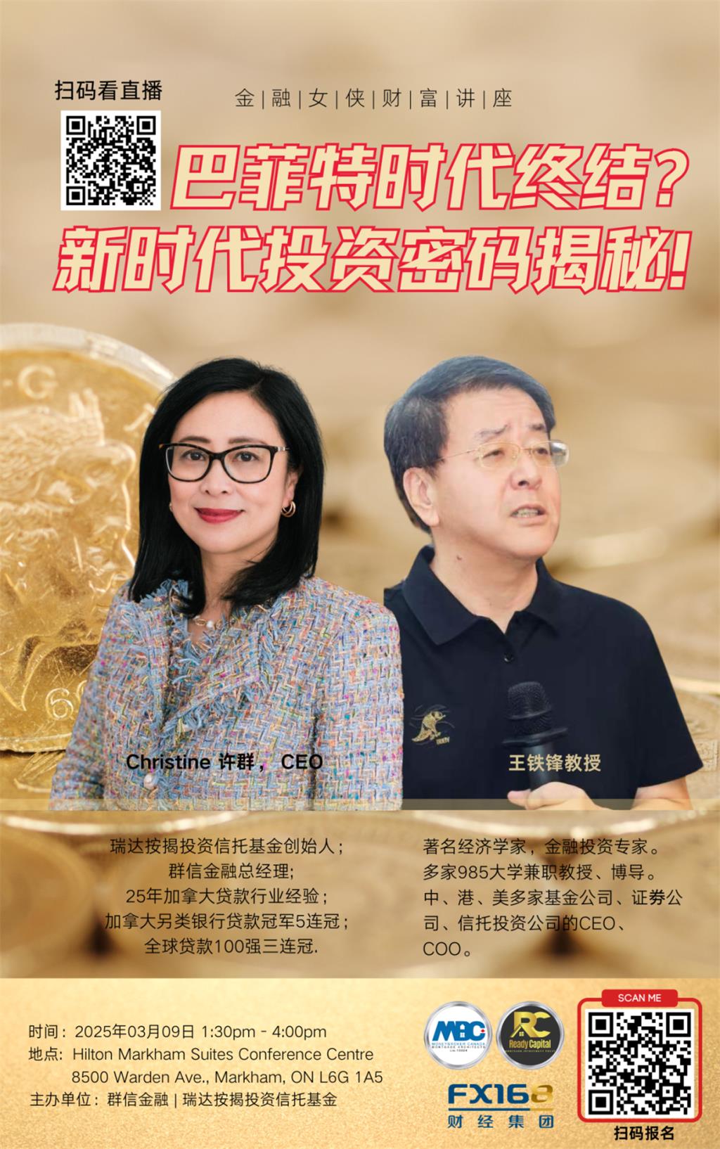 美国仍旧是最适合投资人赚钱的地方。为什么?来听听今年最值得听的投资讲座,一定会颠覆你的认知!2025年3月9日下午1:30,万锦Hilton Toronto/Markham Suites Conference Centre,我们不见不散!
