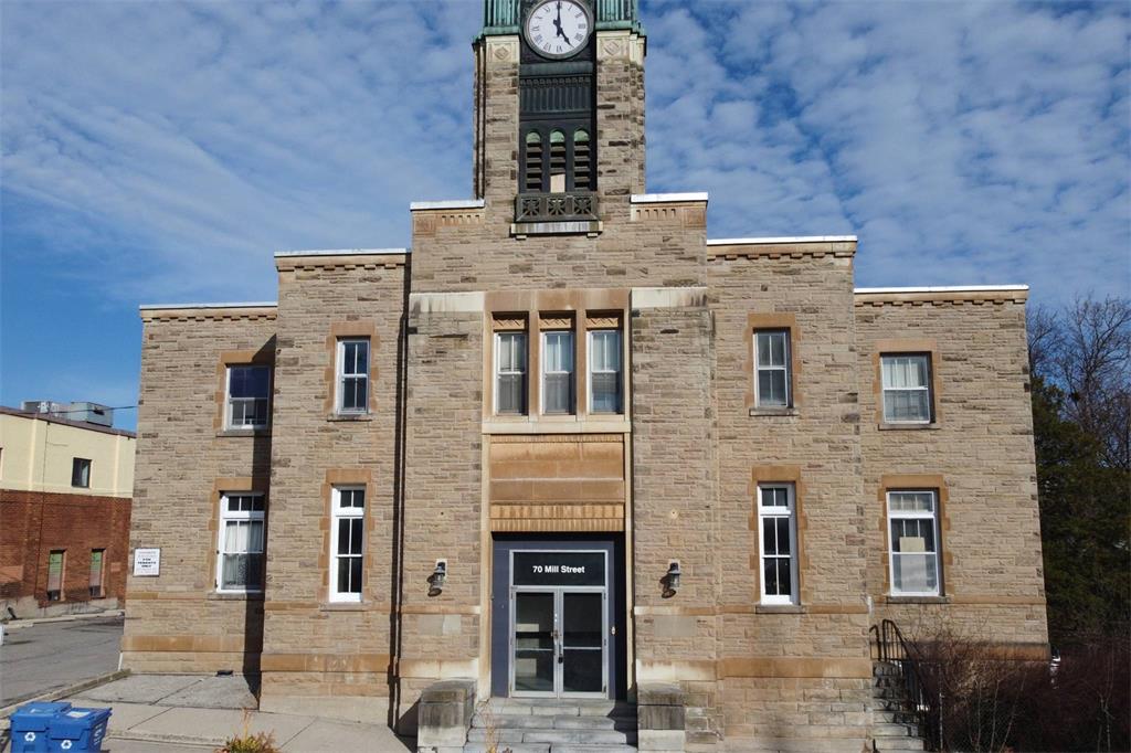 70 Mill St. 由建筑师 JE Walker 和 JG Elliott 设计,采用装饰艺术风格, 建于 1935 年, 使用了来自附近 Glen Williams 的石灰石以及来自 Milton 的砖块和石灰。