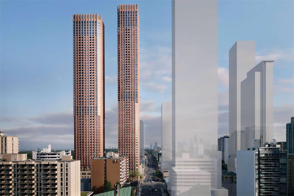 这两座建筑的拟建高度分别为近 200 米和 215 米,将为多伦多市中心的天际线增添新的高峰——在多年的建设和对尚未公布的 Eglinton Crosstown LRT 开通日期的期待中,多伦多市中心的天际线已经因新的开发而彻底改变。
