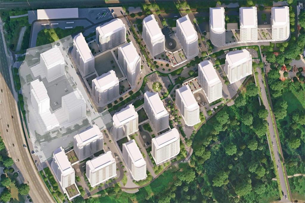该地块目前的蓝图于 6 月底提出,其中的总体方案由 Kirkor Architects and Planners 设计,包含 19 座高楼,高度从 39 层到 48 层不等,分布在 6 个开发区块,共有 10,912 个住宅单元。