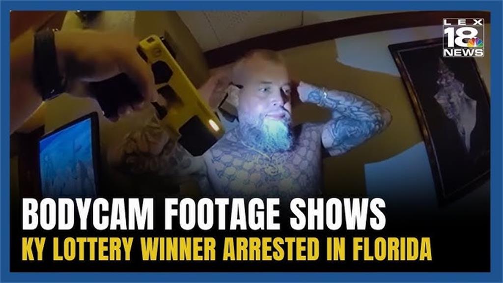 佛罗里达州一名 警官最新发布的随身摄像机拍摄的视频显示,一名肯塔基州男子因涉嫌在肢体冲突中踢了一名调查员的脸而被捕,几个小时前他刚刚获得超过 1.5 亿美元的彩票奖金。