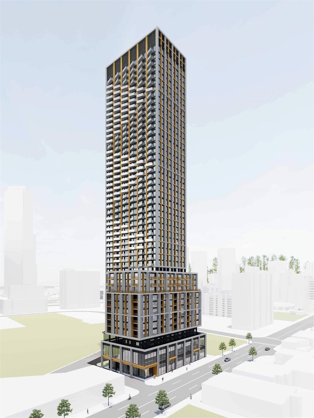 多伦多最近正在考虑重建Dollarama超市及其周边的托儿所,以满足该市对新住房的迫切需求。最近提交给市政府的一份开发申请,可能意味着位于怡陶碧谷伊斯灵顿地铁站西北方向邓达斯西街4975号的现有商业设施将面临倒闭。开发商Hi-Lo Investments计划拆除现有建筑及其周边的地面停车场,建造一座由B+H Architects设计的48层租赁大楼。这座拟建的大楼高度将近160米,将大大超过附近的公寓楼,楼层数将是最近的梅贝尔大道52号高层建筑的两倍多。然而,它的高度将与面向东南方向铁路走廊的塔楼高度大致相同。