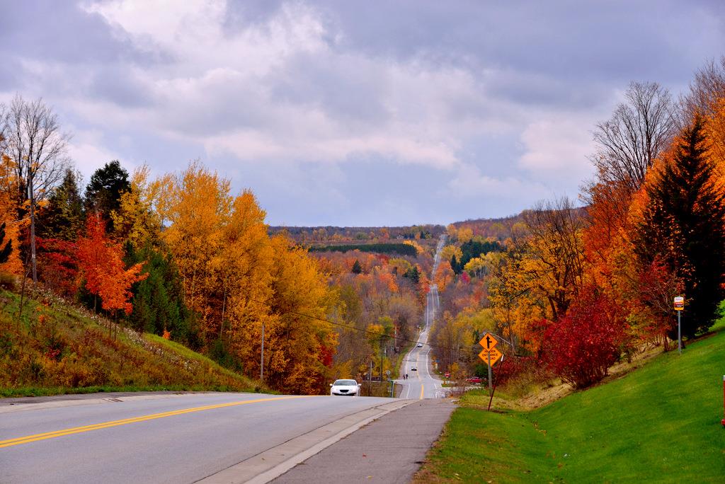 Forks of the Credit Road 最出名的,是它的连续弯道。公路的一段“S 型”急弯被很多摄影爱好者称为“秋天的明信片”,在高处俯瞰时,蜿蜒的公路像一条丝带穿行在彩林之中。这里车速普遍较慢,也有多个路肩可以临时停靠,方便拍照。