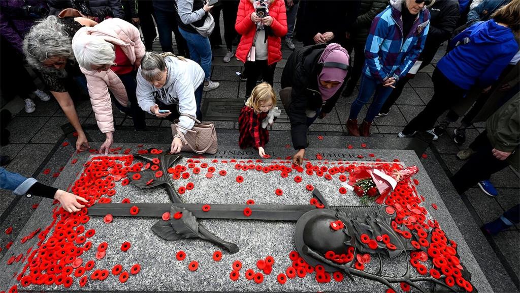 今天,加拿大各地民众聚集在城市和乡镇,缅怀阵亡将士。活动包括上午11点(美国东部时间)的两分钟默哀、21响礼炮和敬献花圈仪式。仪式结束后,参与者将被鼓励摘下衣服上的红色罂粟花,放在无名烈士墓上。