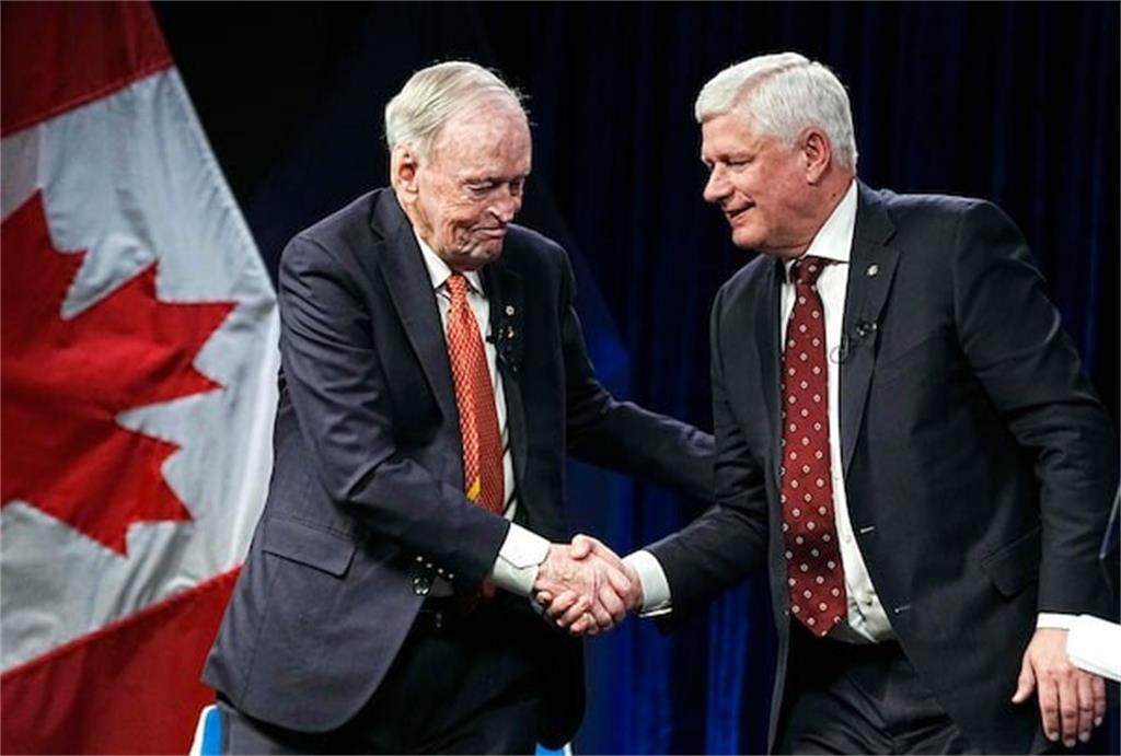 两位来自不同政党的前总理在 Royal Canadian Geographical Society 举办的活动中同台对话。活动期间,哈珀因其在 2006 年至 2015 年任总理期间推动北极主权及国家公园建设,获颁该机构的金质奖章。