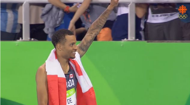 星期四晚上在里约奥运会举行的男子2百米短跑决赛中,世界短跑巨星、牙买加的博尔特获得金牌,加拿大的德加西获得了银牌;这对博尔特和德加西都是由历史意义的时刻。