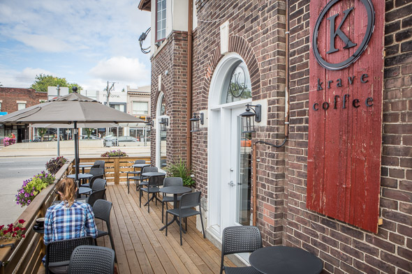 Krave咖啡是 St. Clair west的一个山顶咖啡馆。暴露的砖拱和墙壁、木制的咖啡柜台和硬木地板墙上的古董咖啡杂志都打造出浓郁的乡村咖啡风情。
