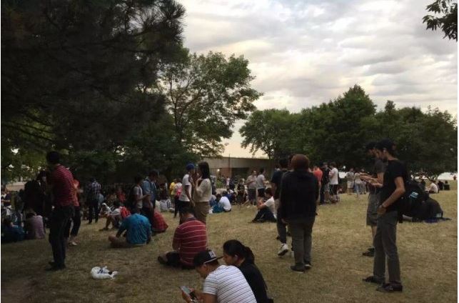 大批民众上街抓口袋精灵Pokemon。