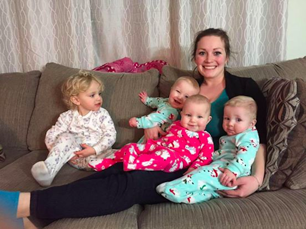 面对小宝宝,父母往往手足无措,更何况是同时面对几个宝宝呢?想必所有的家长都一定会非常头痛!看看文中这位来自安省的26岁的母亲Corrie-Lynn Whyte,共有4个孩子,分别是2岁的 Emily和三胞胎,他们是8个月大的 Olivia, Jackson, and Levi。