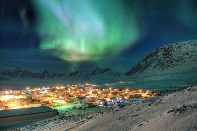 加拿大努纳武特地区(Nunavut)北部的阿勒特(Alert),是地球上最北部的人类永久定居地,它的纬度是北纬82度30分(北极圈纬度:66度34分),距离北极点仅有817千米。每年的11月到2月,阿勒特进入极夜,这四个月的平均日照值为零。只有在十分靠近极点的地区,才会有这种情况出现,这里被评选为这个星球上最孤立的存在之一。