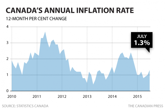 经济学家们此前对7月份物价指数的预测是1.4%。对制定基准利率的加拿大银行来说,1%到3%的物价指数是可以接受的水平。