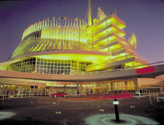 位于圣母岛上一座类似于船型结构的建筑就是1967年蒙特利尔世博会的法国展览馆和魁北克展览馆,它也是我们今天这里要介绍的主角-蒙特利尔赌场(Casino de Montreal)。蒙特利尔赌场建于1993年,是加拿大最大的赌场,目前由魁北克赌场协会经营。它的建筑前身就是1967年蒙特利尔世博会上的法国展览馆和魁北克展览馆。后来在两座展览馆中有修建了一个连接两个管区的建筑,将两个管区相连,也就成为我们今天看到的3个建筑组成的蒙特利尔赌场。