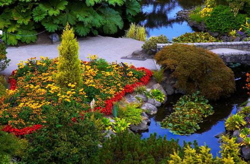 园内种有樱花、杜鹃、郁金香、水仙、木兰等各式各样的花卉,四季更新。春季时各色的樱花开满枝头,是大温地区最适合赏樱的公园之一。五月时则有五颜六色不同品种的山茱臾、西洋水仙与郁金香争香斗艳。夏天﹐公园内的景色更是美得令人窒息。