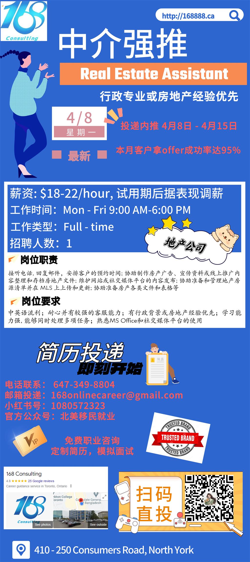 【168新岗】万锦地产公司招聘Real Estate Assistant 1名