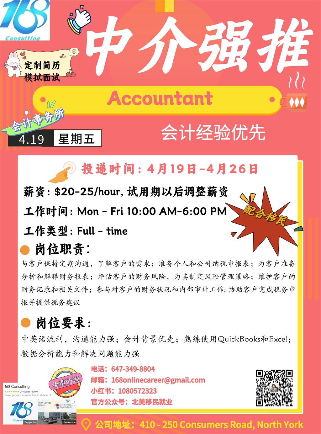 【168新岗】密西会计事务所招聘Accountant 1名(可移民)