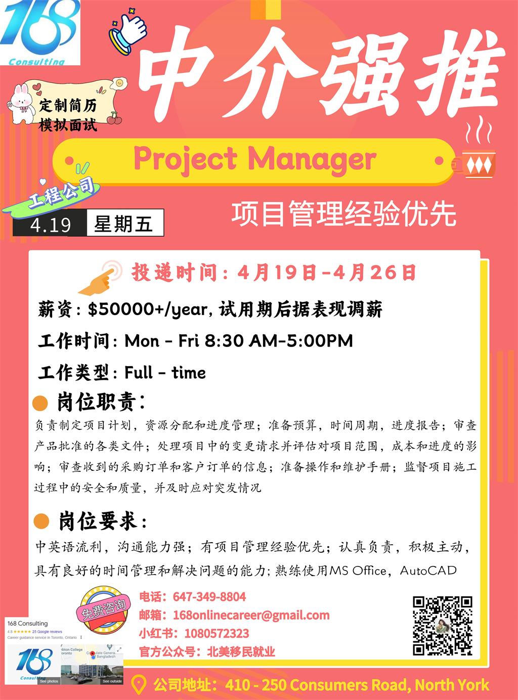 【168新岗】旺市工程公司招聘Project Manager 1名