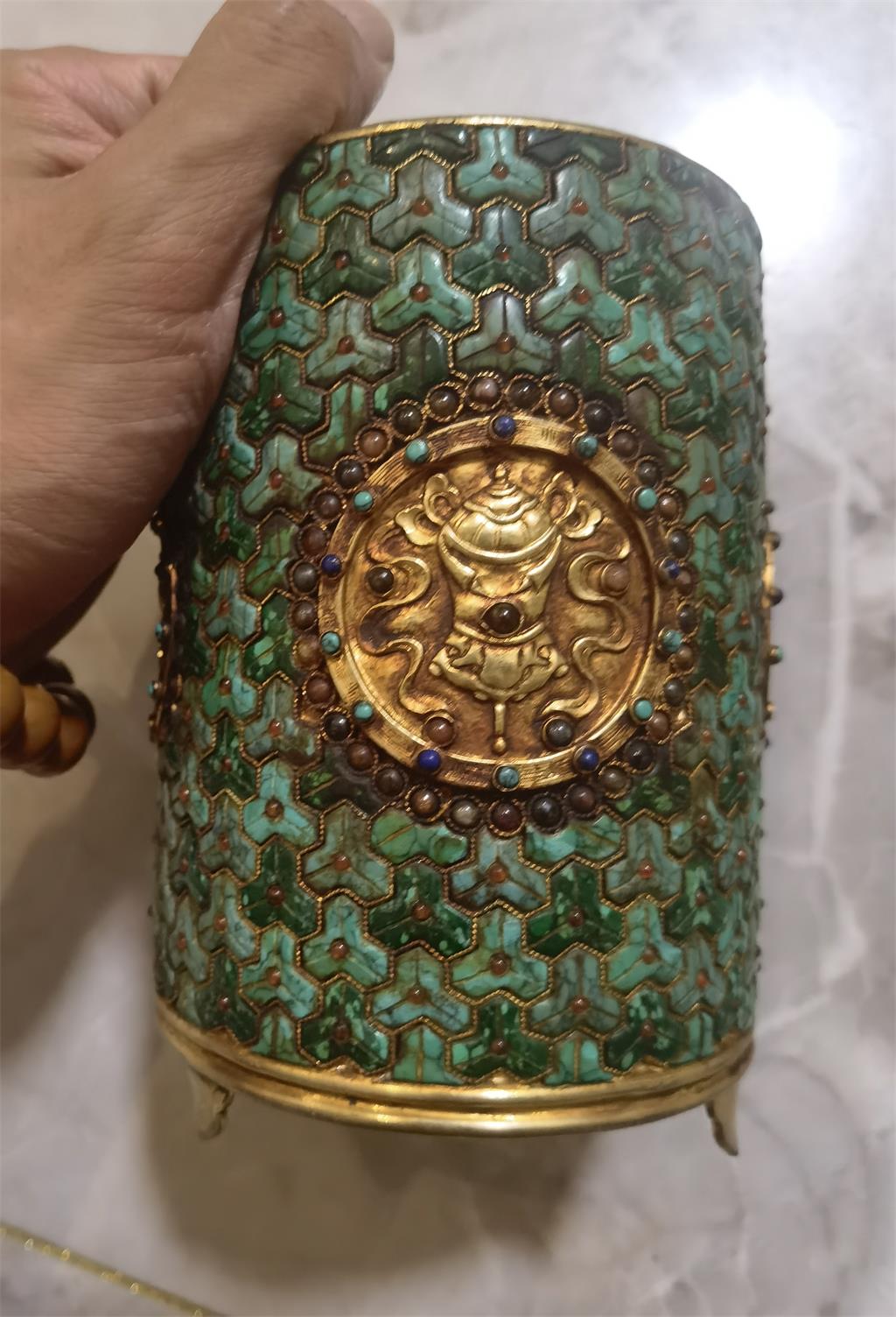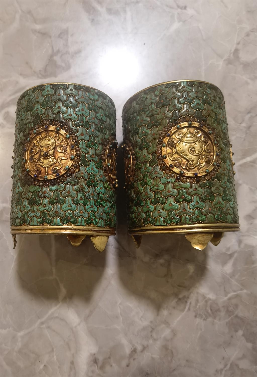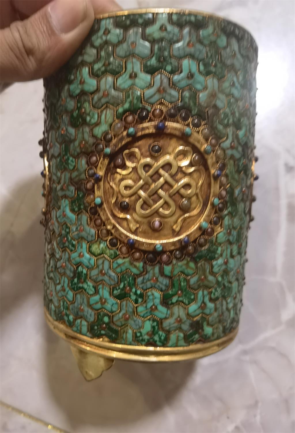 首页 > 二手市场 > 绿松石镶嵌鎏金笔筒一对