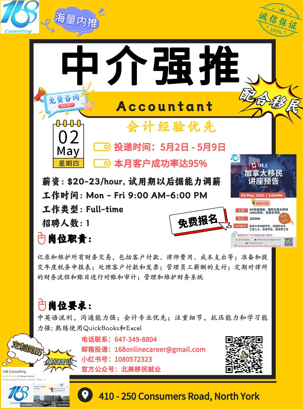 【168新岗】万锦律师事务所招聘Accountant 1名(可移民)