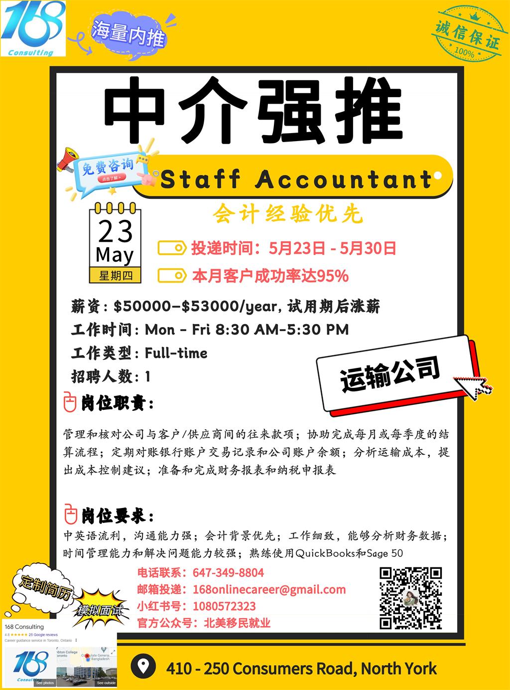 【168新岗】密西运输公司招聘Staff Accountant 1名